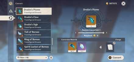 After accessing the bench select the convert option by pressing the symbol on the top of the. Genshin Impact always has something new for players and in the 15 version update its the Dream Solvent. The names of weekly bosses who could drop Dream Solvent in Genshin Impact are Stormterror Andrius and Childe.